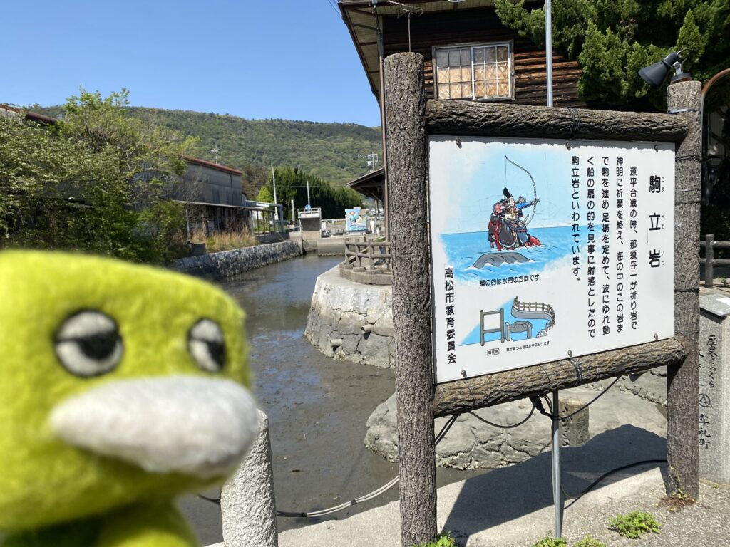 与一は馬に乗って海に入り、波に揺れる扇を狙って見事に命中させたと言います。